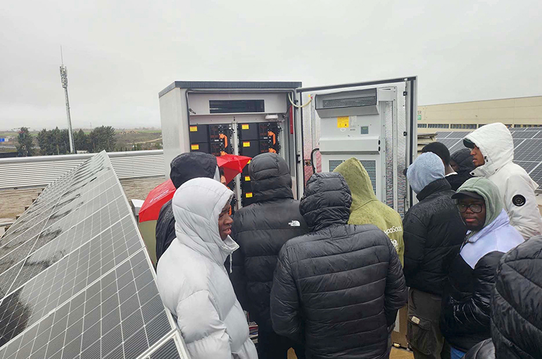 Posteriormente, el grupo recorrió las salas de exposición de producto, donde se explicaron las características y prestaciones de las baterías e inversores solares. La visita concluyó en la cubierta solar del edificio corporativo, donde el alumnado conoció el funcionamiento del armario de almacenamiento que gestiona la energía generada por la instalación fotovoltaica de autoconsumo del edificio.